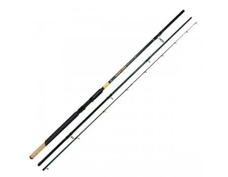 Материал бланка среднемодульный карбон, что делает удилище максимально прочным при небольшом весе (304 грамма). Кольца со вставками Sic, катушкодержатель винтовой увеличенного размера, материал рукояти ЭВА + пробка. В комплекте идет три сменные вершинки разной жесткости (1 графитовая + 2 стекловолокно), состоит из 3 секций. Длина 3.6 метров, транспортировочная 127 см. Фидер с тестом 120+ грамм, подходит для рыбалки на реках и водоемах с течением. Средне-быстрый тест.